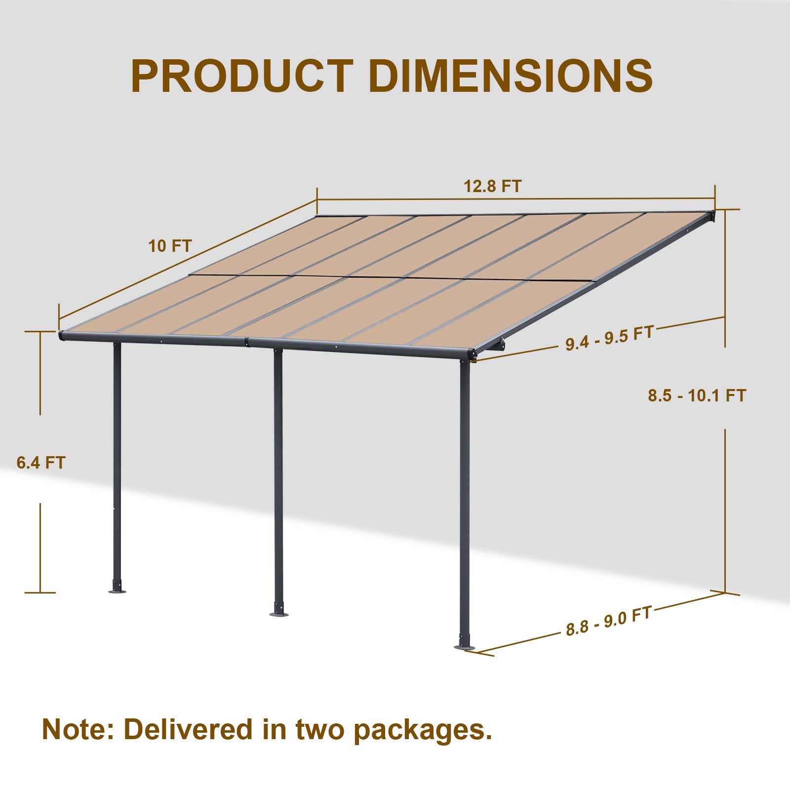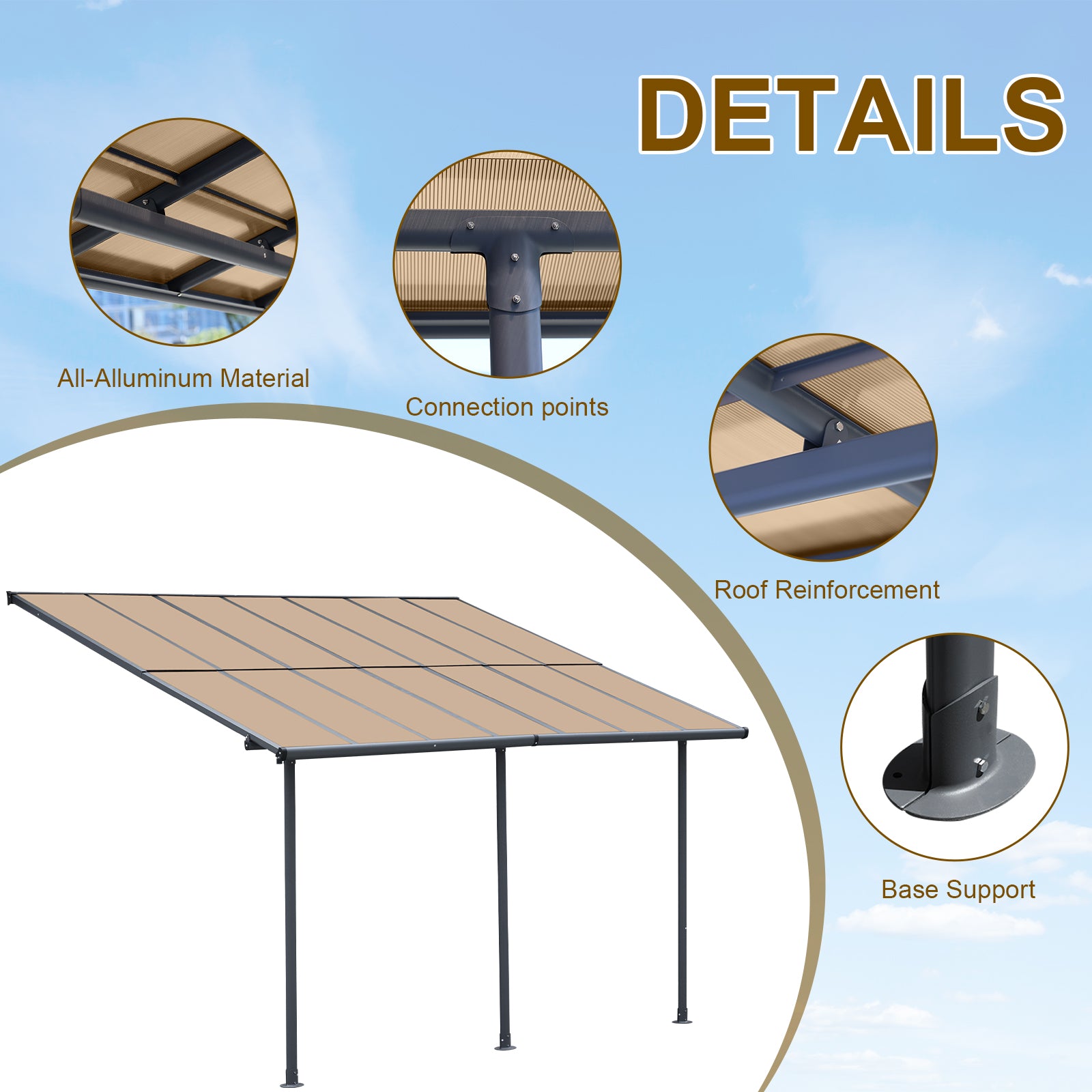 13x10/16.5x10 ft. Wall Mount Gazebo - Polycarbonate Outdoor Pergola