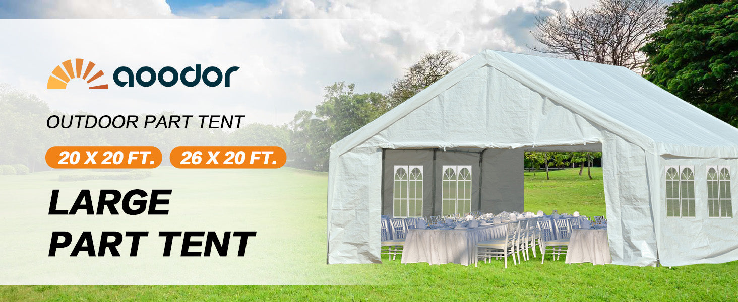 - Packing List-(26x20ft.): Top cloth*1, sidewalls with church window*2 , zipper door*2, galvanized pipe frame, 5 top horizontal support pipes, iron connectors, ground nails*24, expansion screws*20, windbreak rope*4.