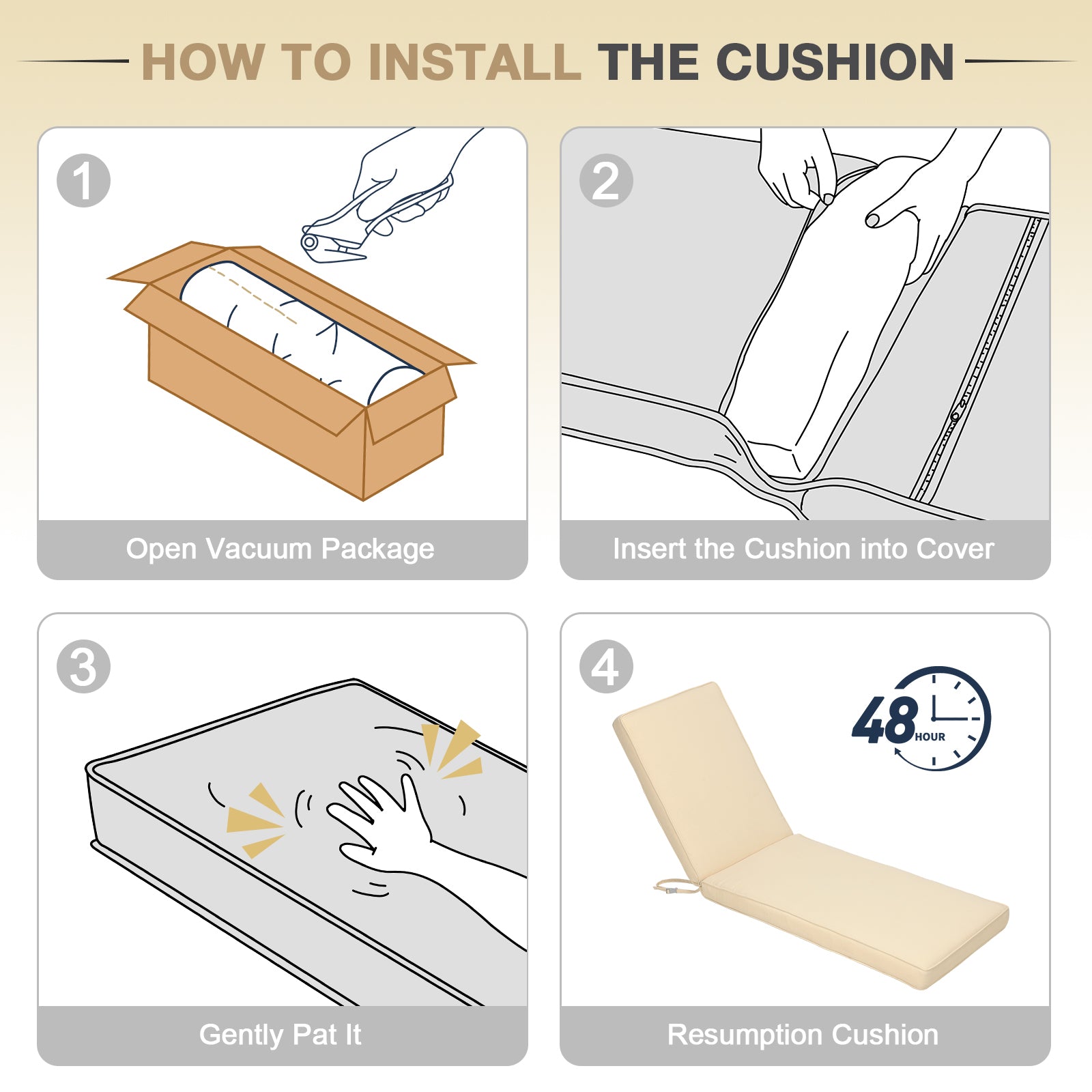 - NOTICE-This set includes 2 chaise cushions (Only Cushions, Chaise Lounge not included). Measure your furniture before purchase: 72“W x 21”D x 3"H.