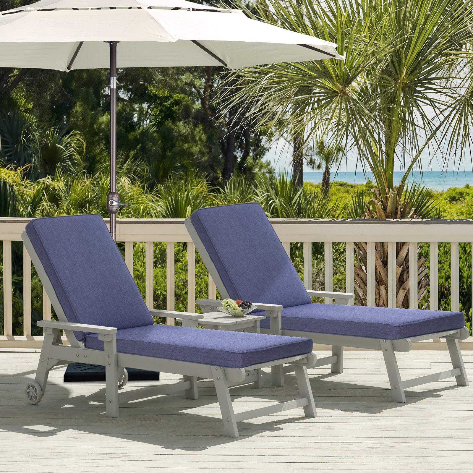 72x21x3 inch Patio Chaise Lounger Cushions Set of 2 - Dark Blue