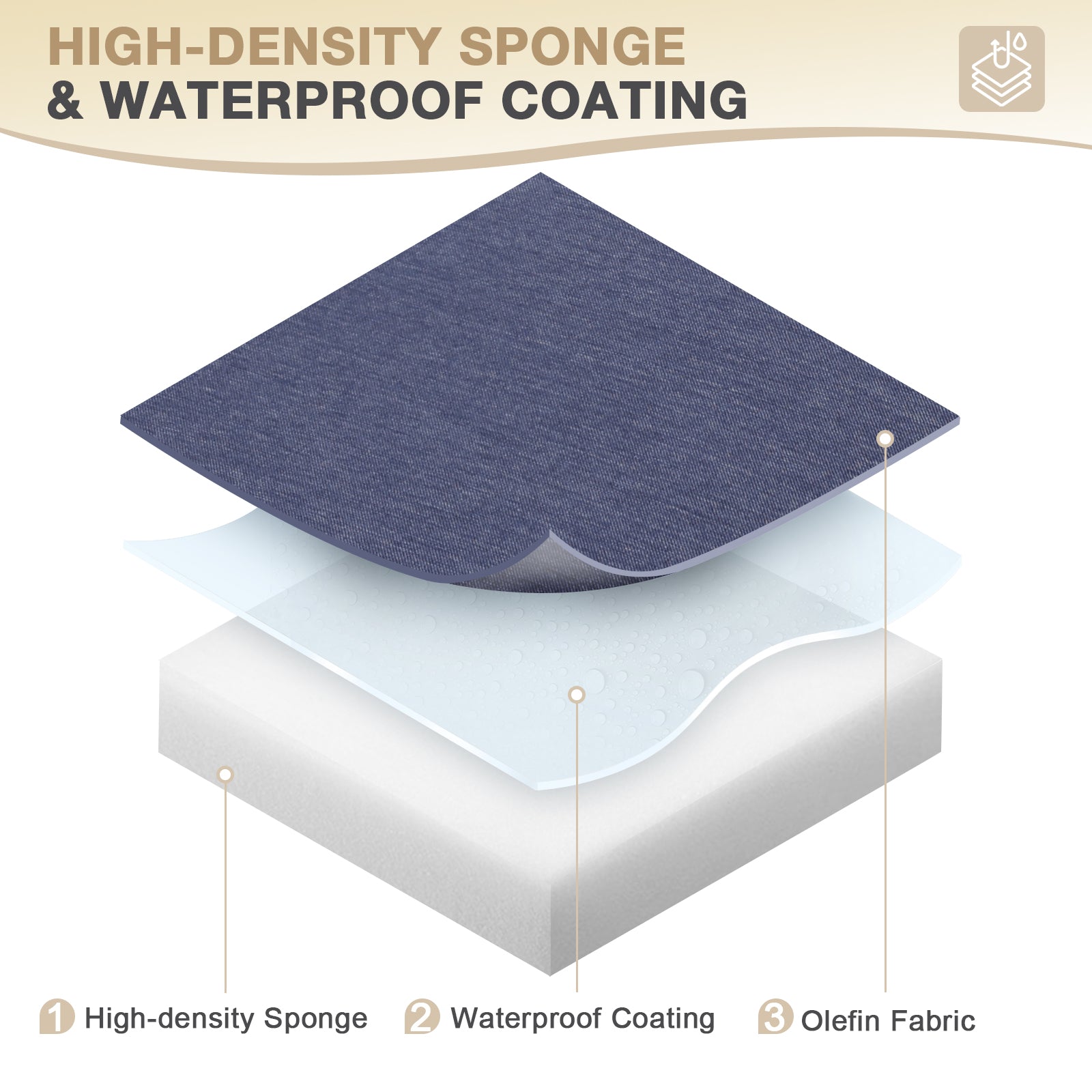 - MATERIAL - The cushion cover is made of olefin fabric, which is fade resistance, UV protected and water resistant, an ideal cushion for outdoor and indoor use.