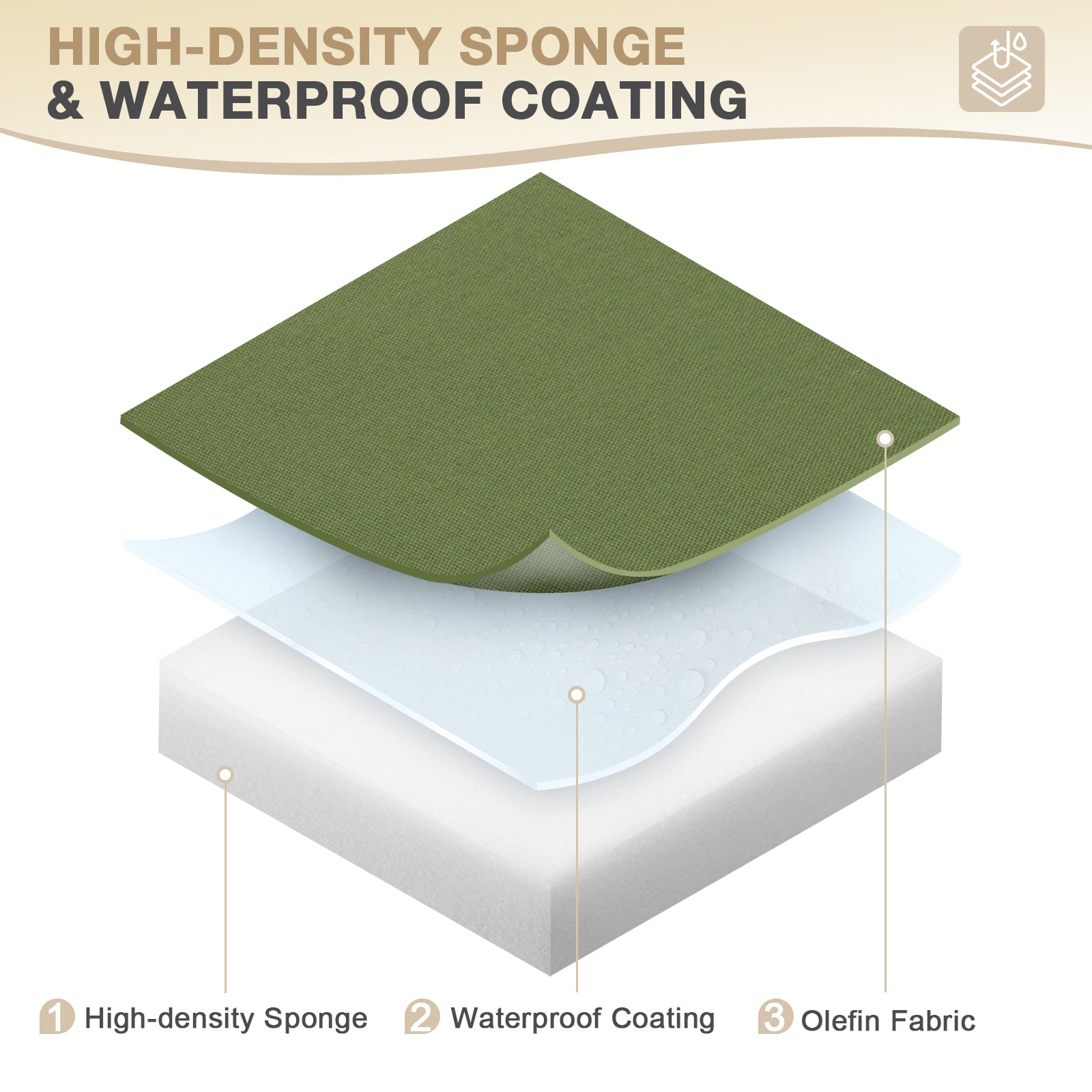 - MATERIAL - The cushion cover is made of olefin fabric, which is fade resistance, UV protected and water resistant, an ideal cushion for outdoor and indoor use.