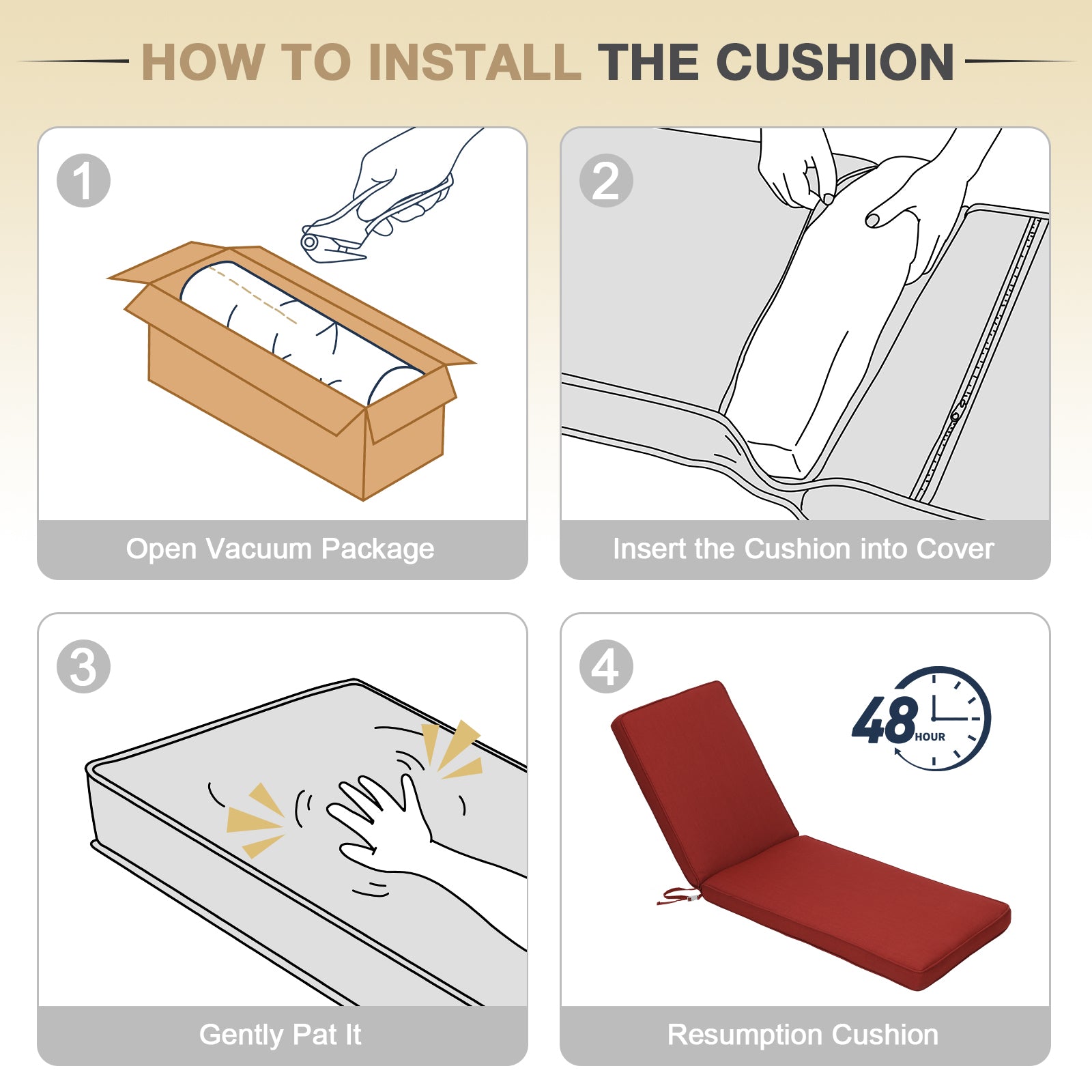 - NOTICE-This set includes 2 chaise cushions (Only Cushions, Chaise Lounge not included). Measure your furniture before purchase: 72“W x 21”D x 3"H.