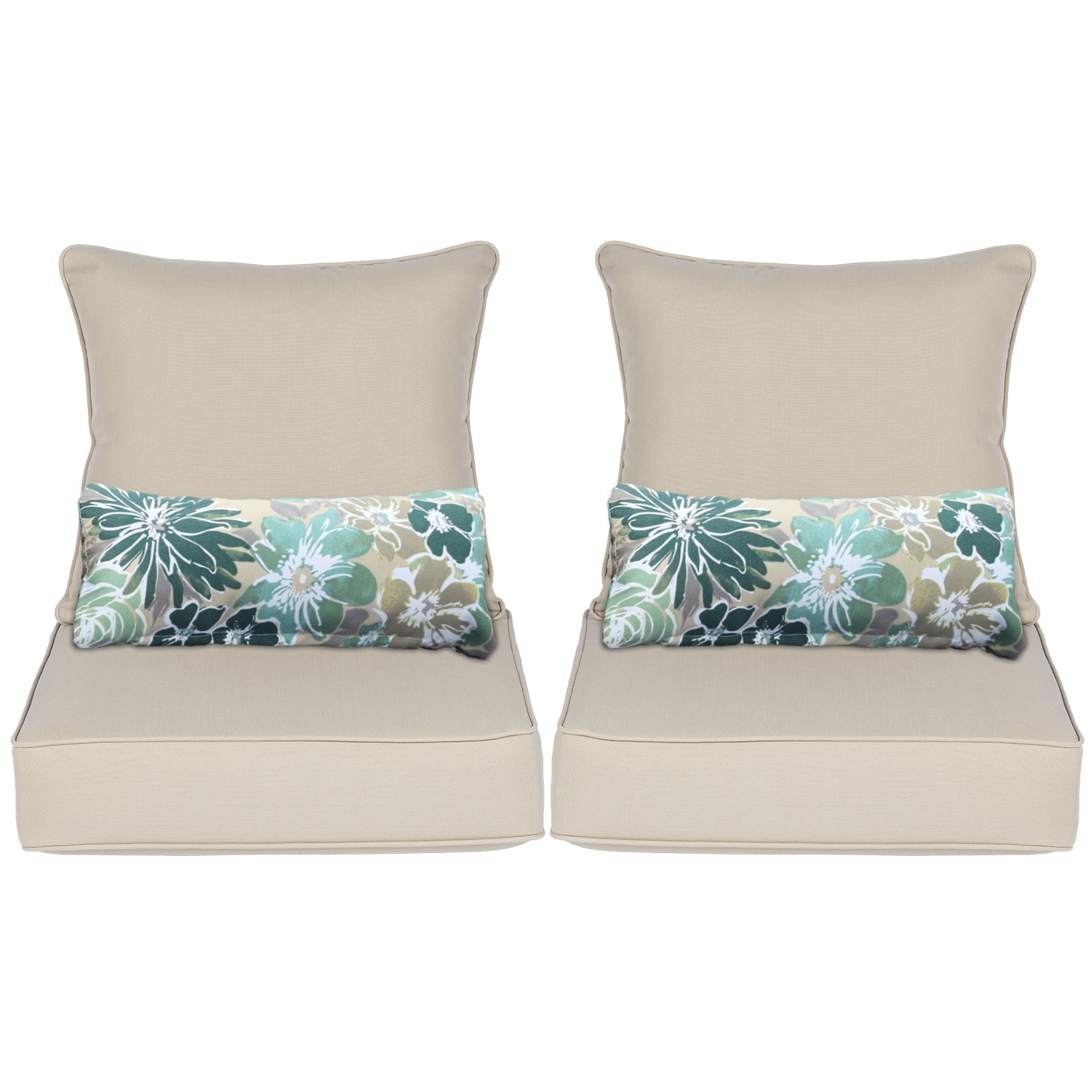 Yes, this cushion set includes 2 seat cushions, 2 back cushions and 2 lumbar pillows. Designed to provide extra back and lumbar support, these lumbar pillows are made from durable printed fabric that adds a pop of colour to the solid coloured cushions.