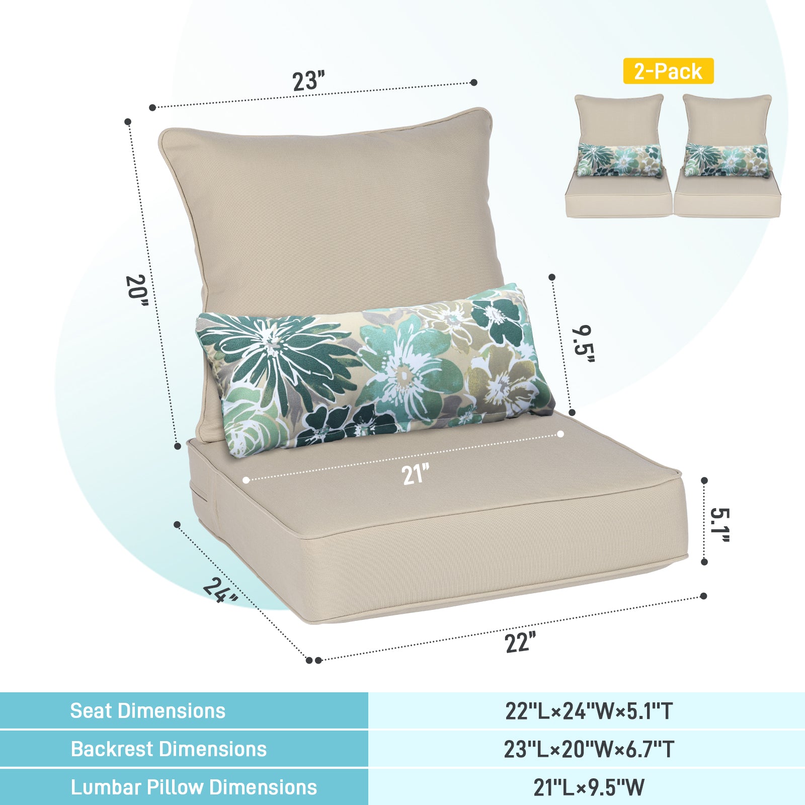 - 3 sizes available, including 22x24 inch, 23x26 inch and 24x24 inch. The interior padding is 5.1-inch thick sponge foam to provide good support and comfort.