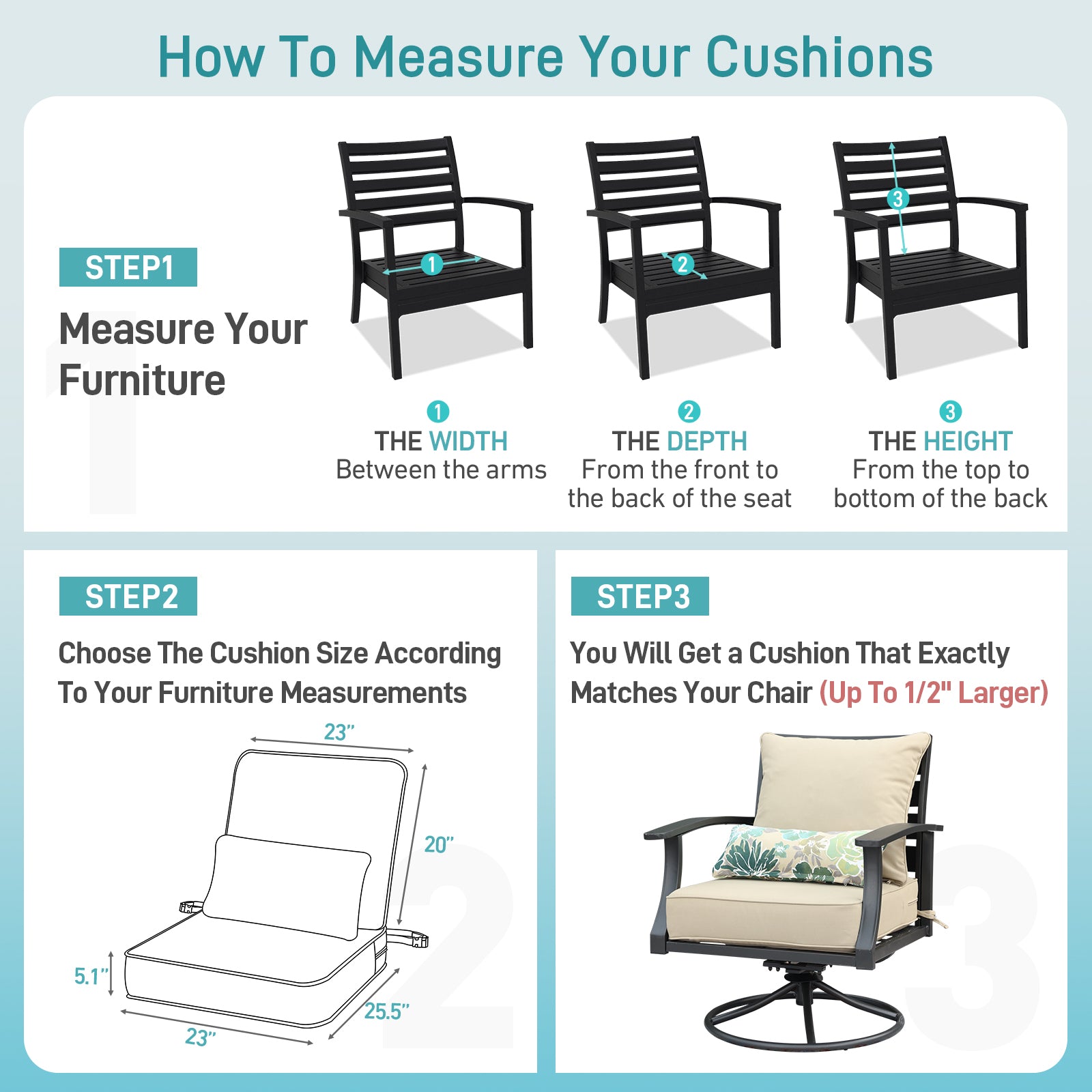 Accurate measurements guarantee a comfortable and tailored fit for your patio furniture.