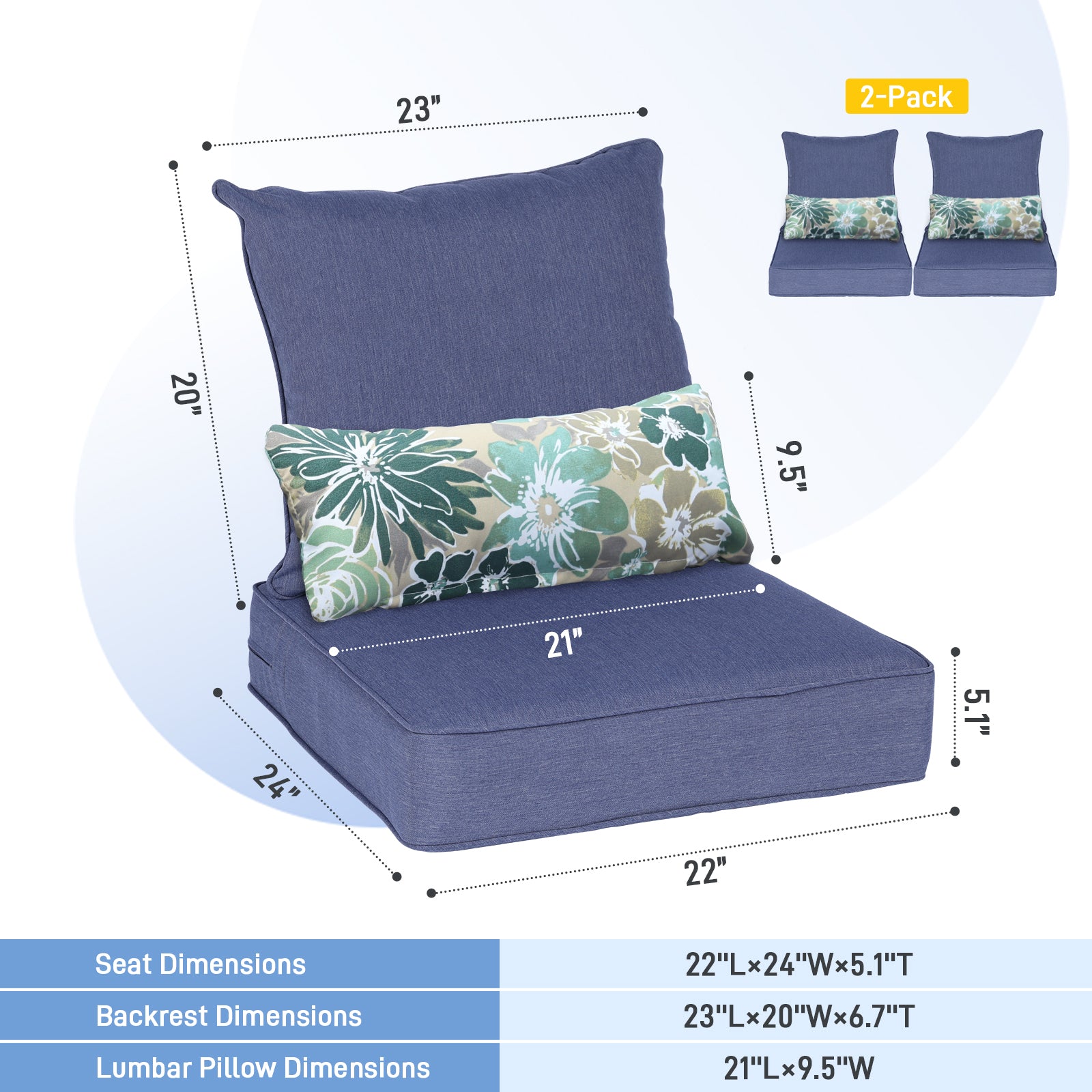 Yes, this cushion set includes 2 seat cushions, 2 back cushions and 2 lumbar pillows. Designed to provide extra back and lumbar support, these lumbar pillows are made from durable printed fabric that adds a pop of colour to the solid coloured cushions.