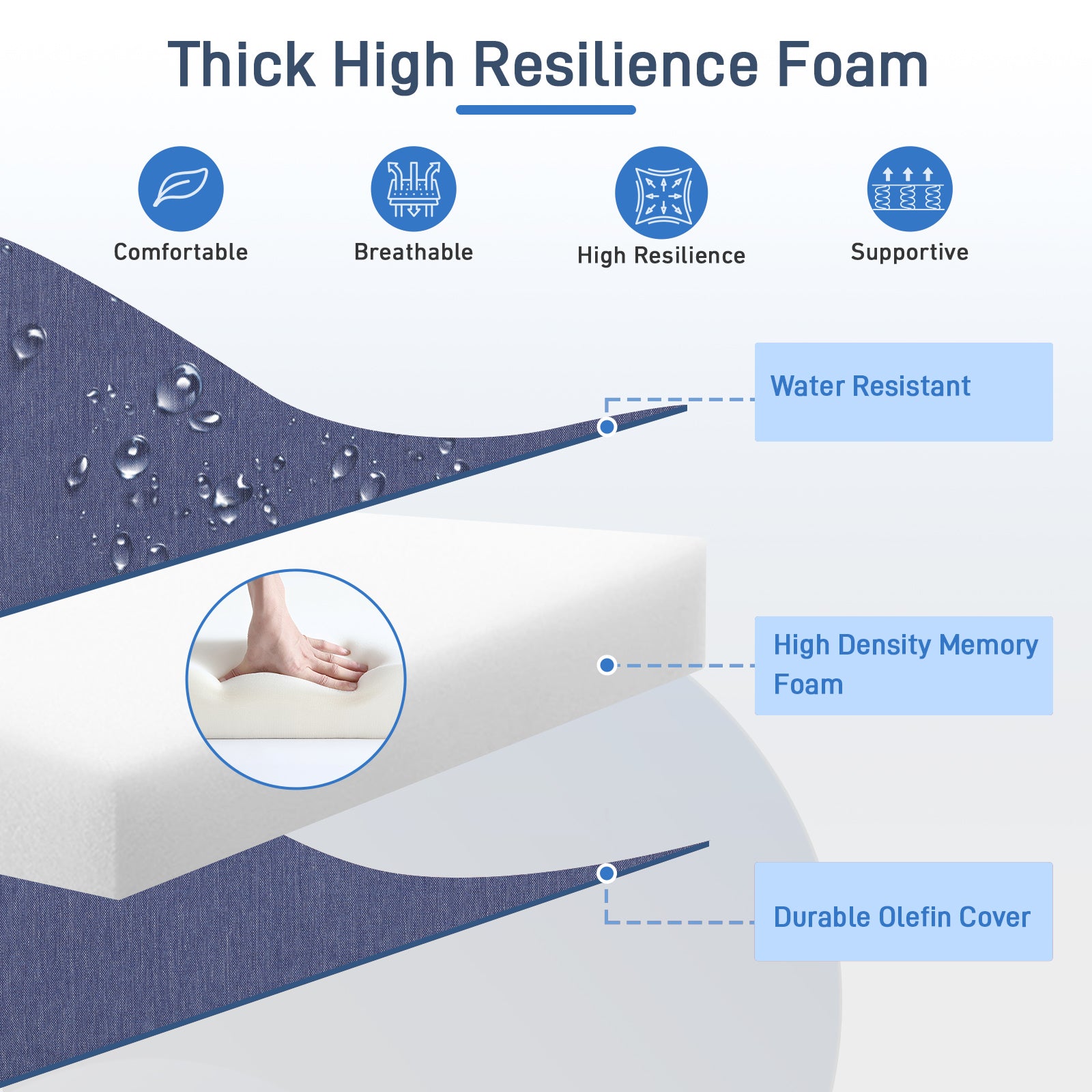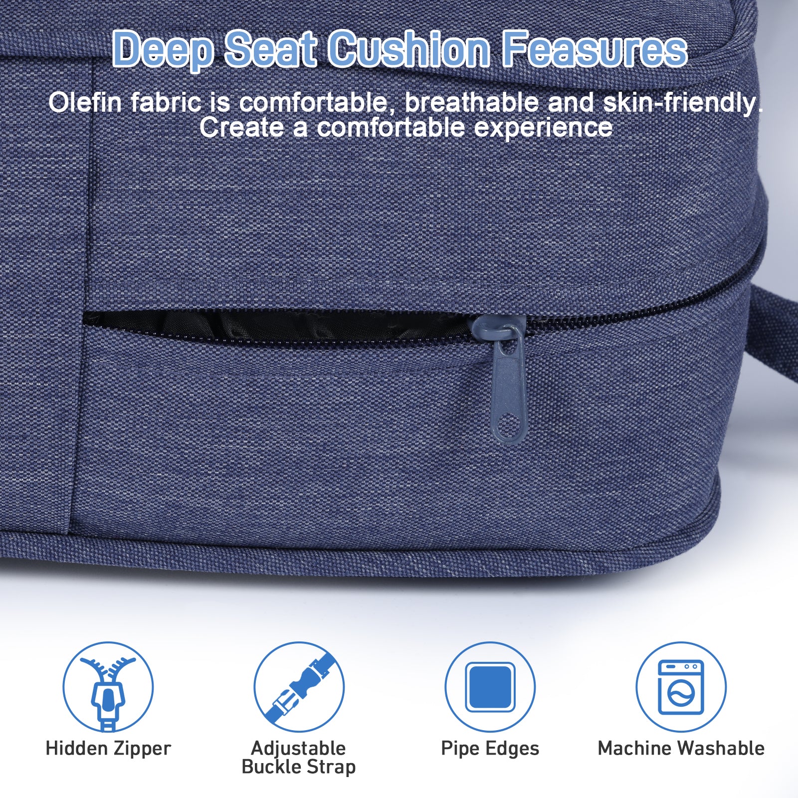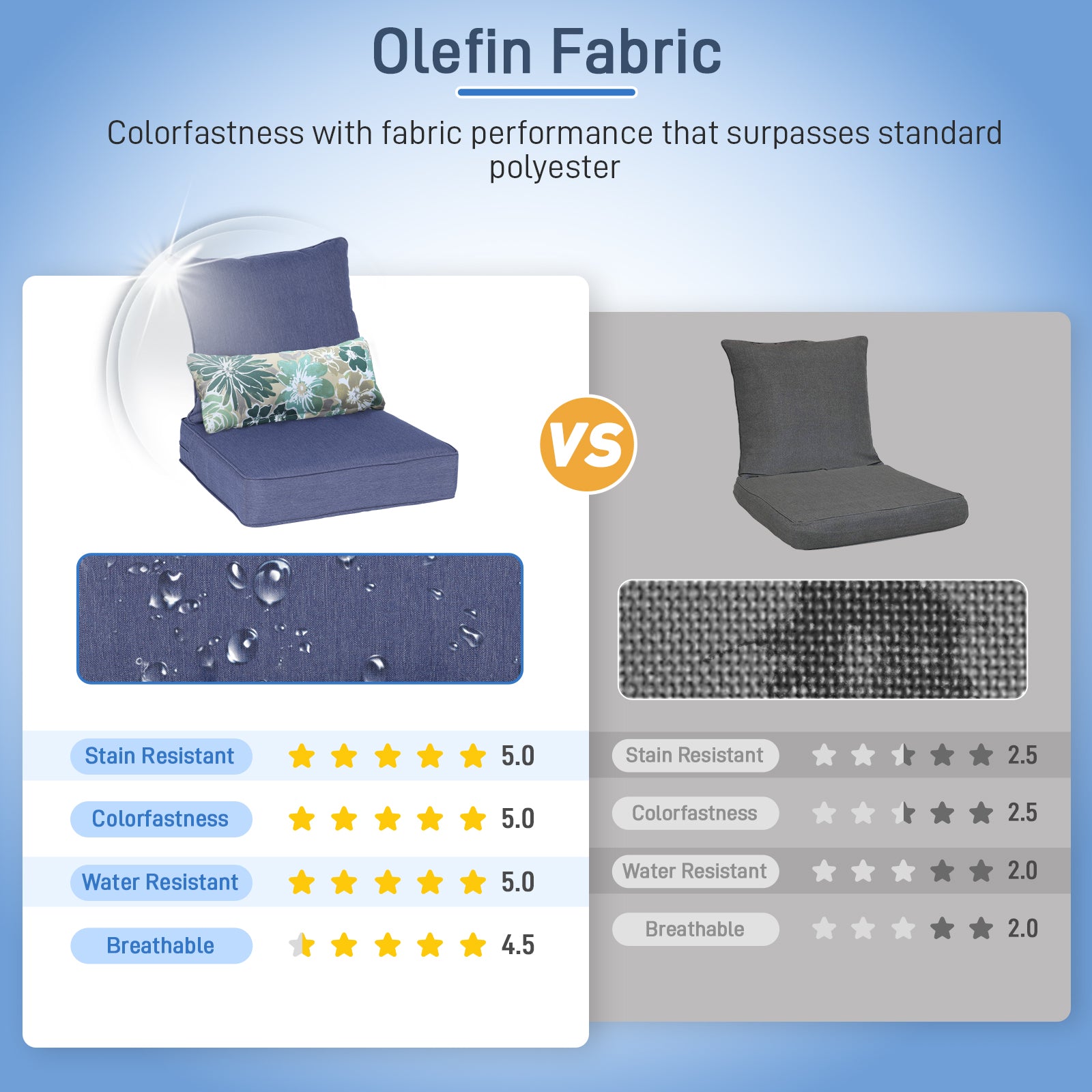 - The cushion covers are made of stain-resistant and mildew-resistant olefin fabric, which is fade-resistant, UV-protected, and water-resistant and durable.