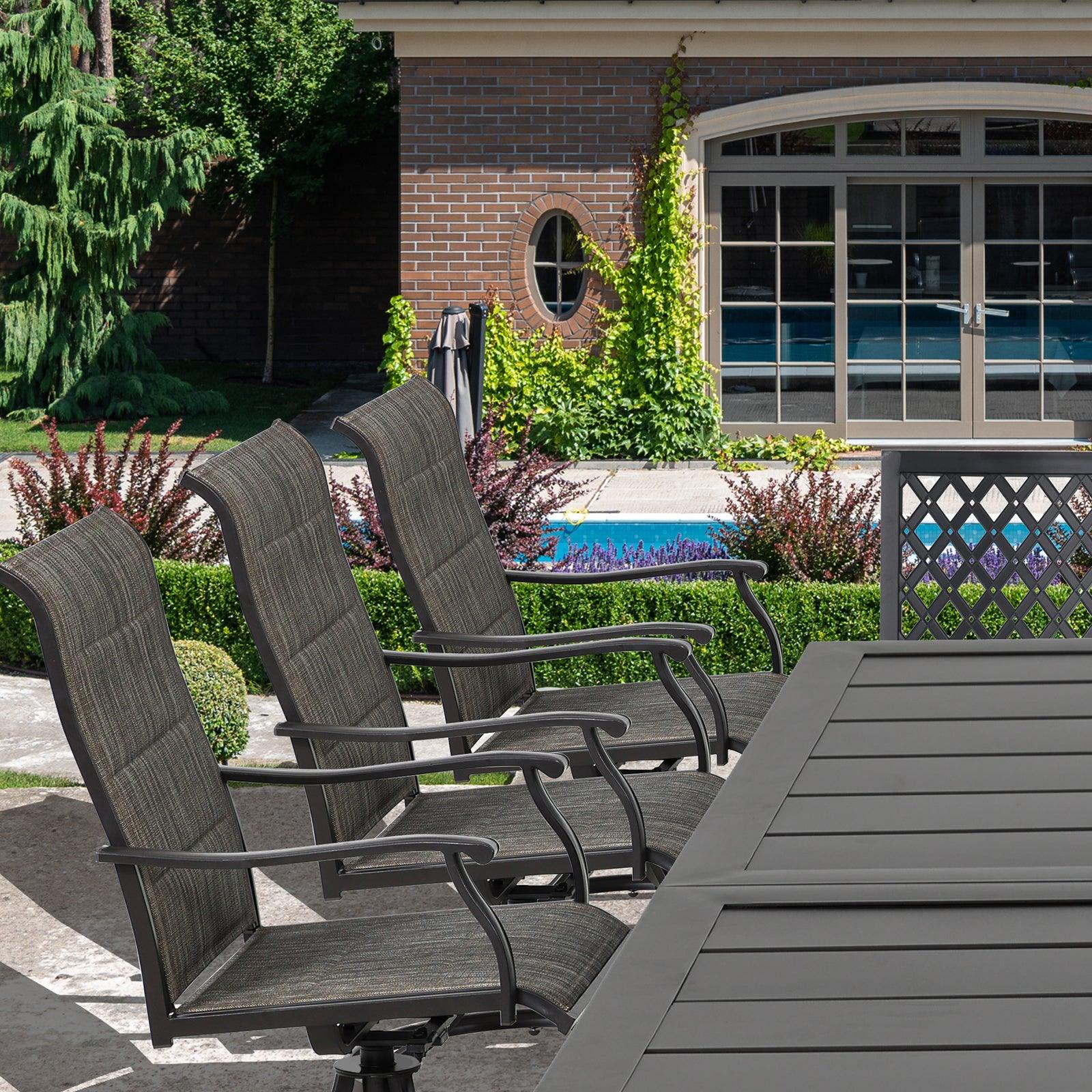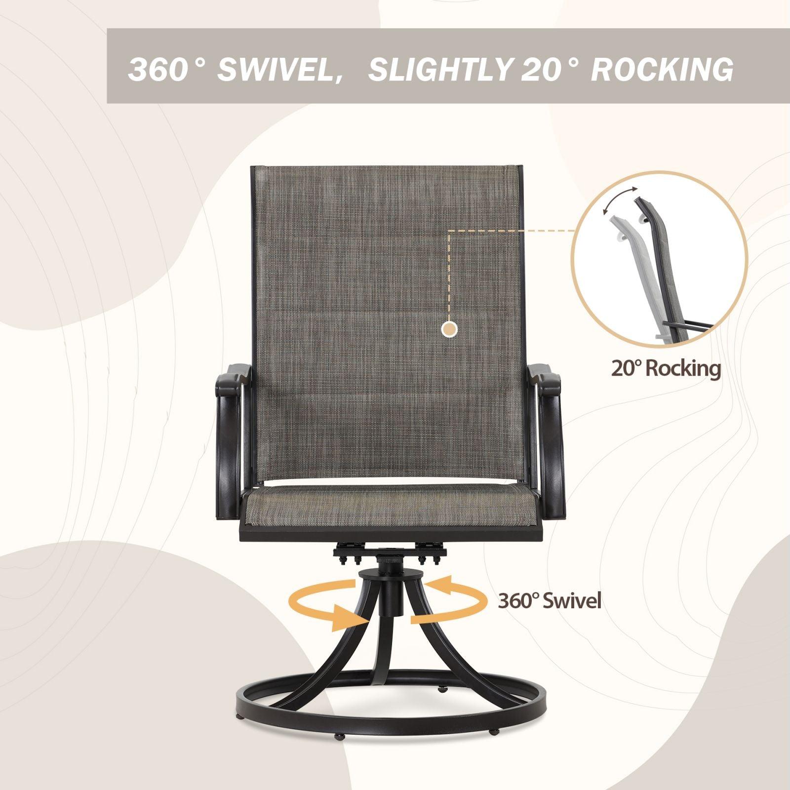 - 360-degree Swivel: Outdoor dining chairs with round swivel base allow for smooth 360° rotation, slight 20° Rocking and great stability for extra lounging and relaxation.