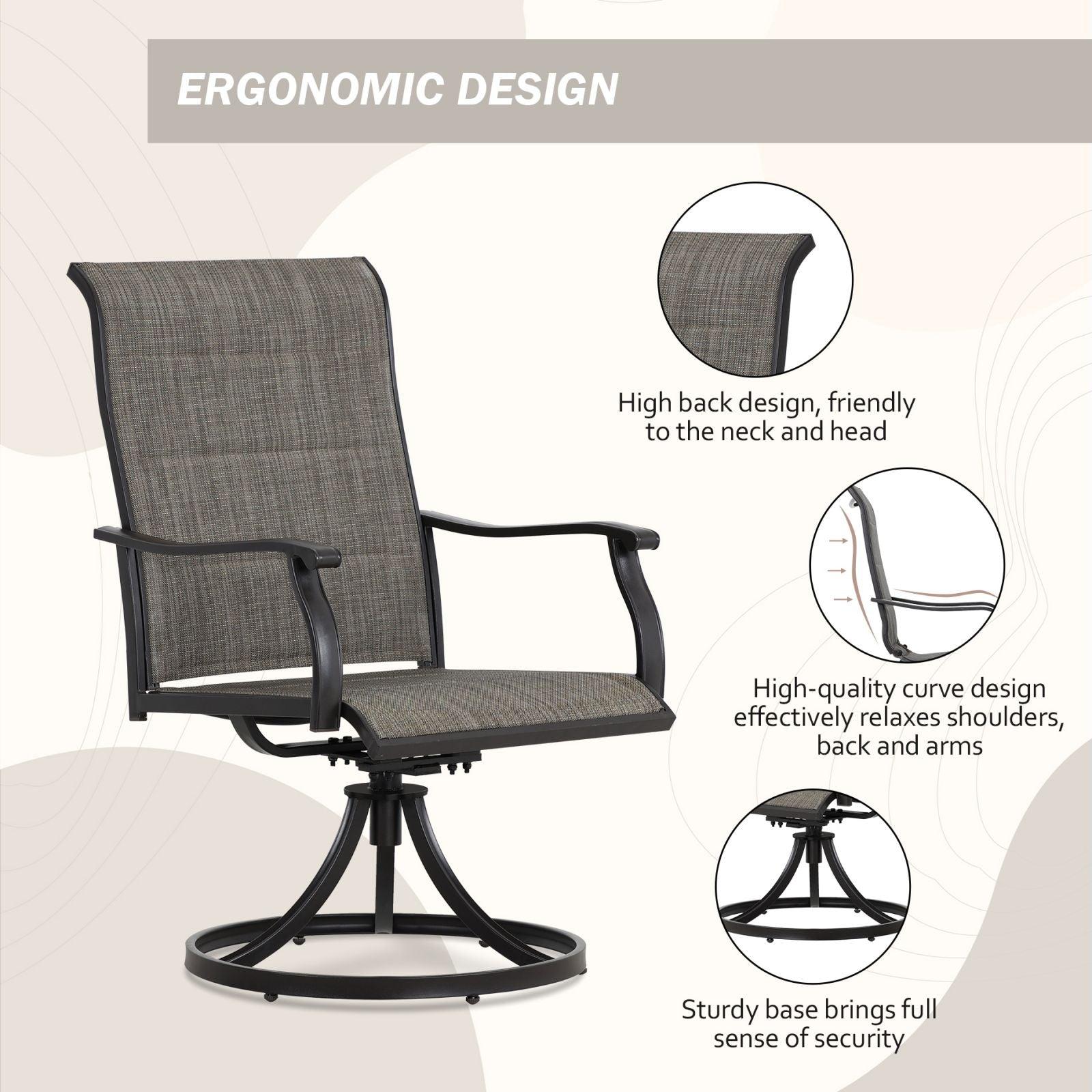 Outdoor 360-degree Swivel Dining Chairs Set of 2, Breathable, Durable High Back Textilene Chair