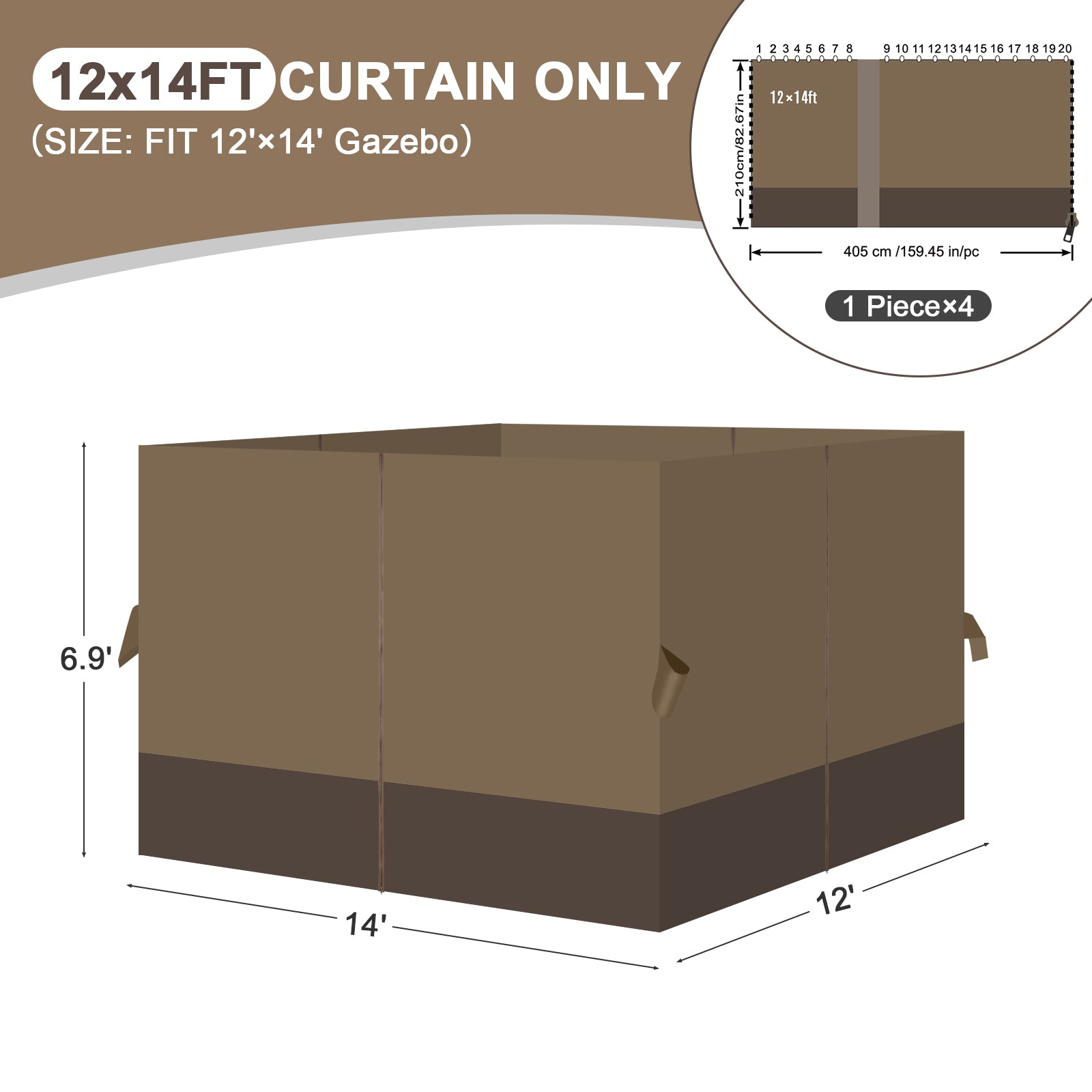 Outdoor Gazebo Curtains, 4 Panels Privacy Sidewall Replacement (Curtain Only) - Light Coffee and Coffee