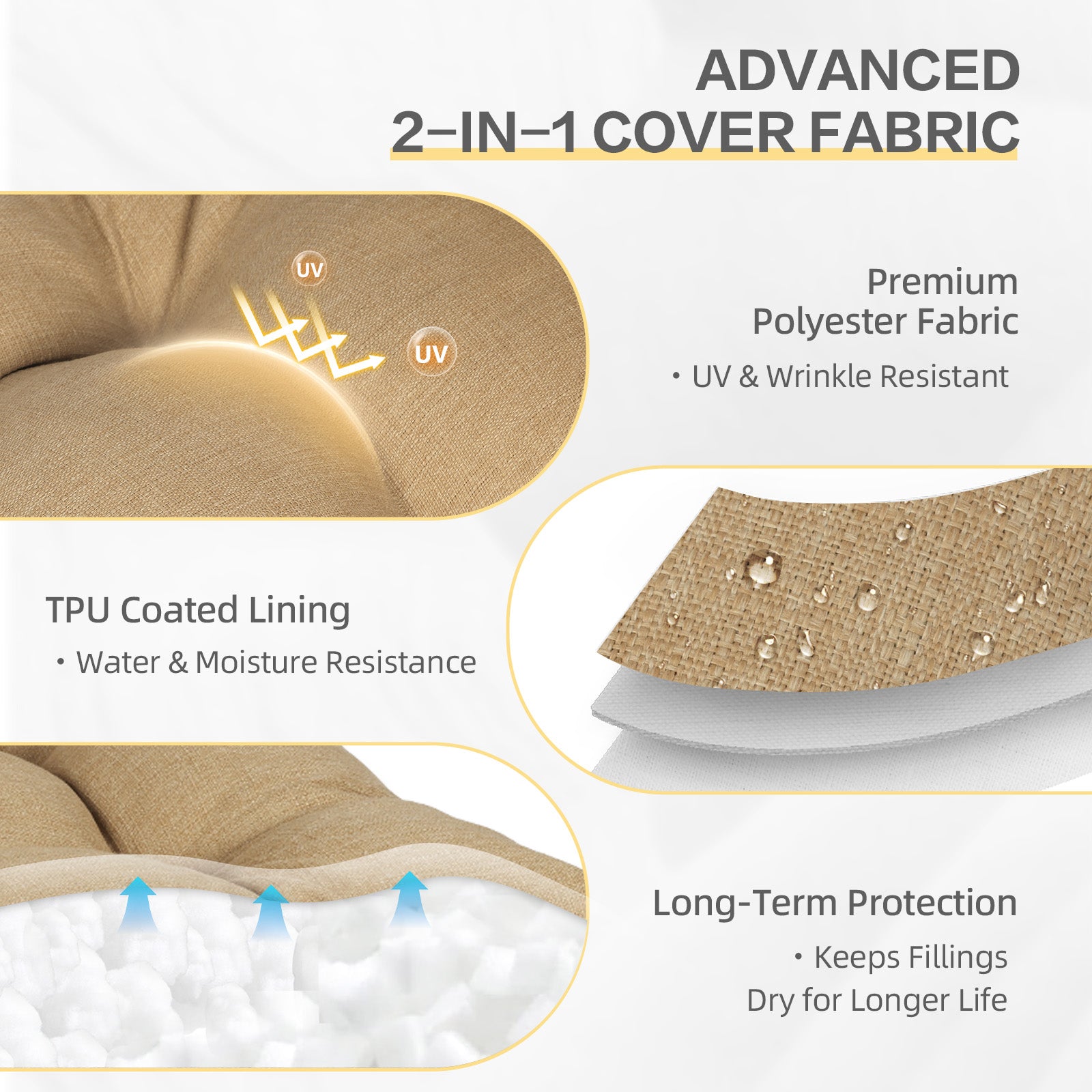 - Built to Last Outdoors: Crafted from 240GSM high-quality polyester staple fiber, these cushions resist fading and wrinkles through countless seasons. The hidden TPU water-resistant coating acts as a protective barrier, blocking moisture and liquid from reaching the inner fill. This means your cushions stay fresh and comfortable, whether you're relaxing in morning dew or afternoon showers.