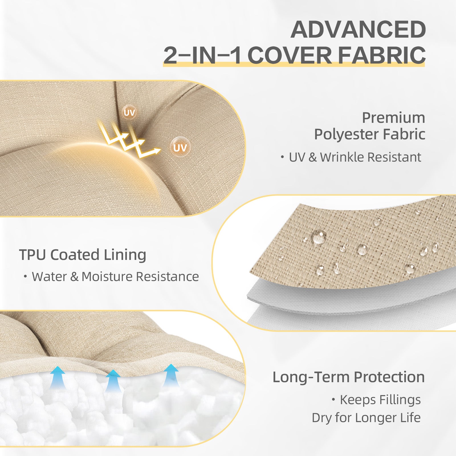 - Stays Put Where You Want It: These tufted adirondack chair cushions feature strategic button tufting that keeps the filling evenly distributed for consistent comfort. Each cushion includes two sturdy ties that wrap around your chair, so they won't slide around when you're getting up or settling in.