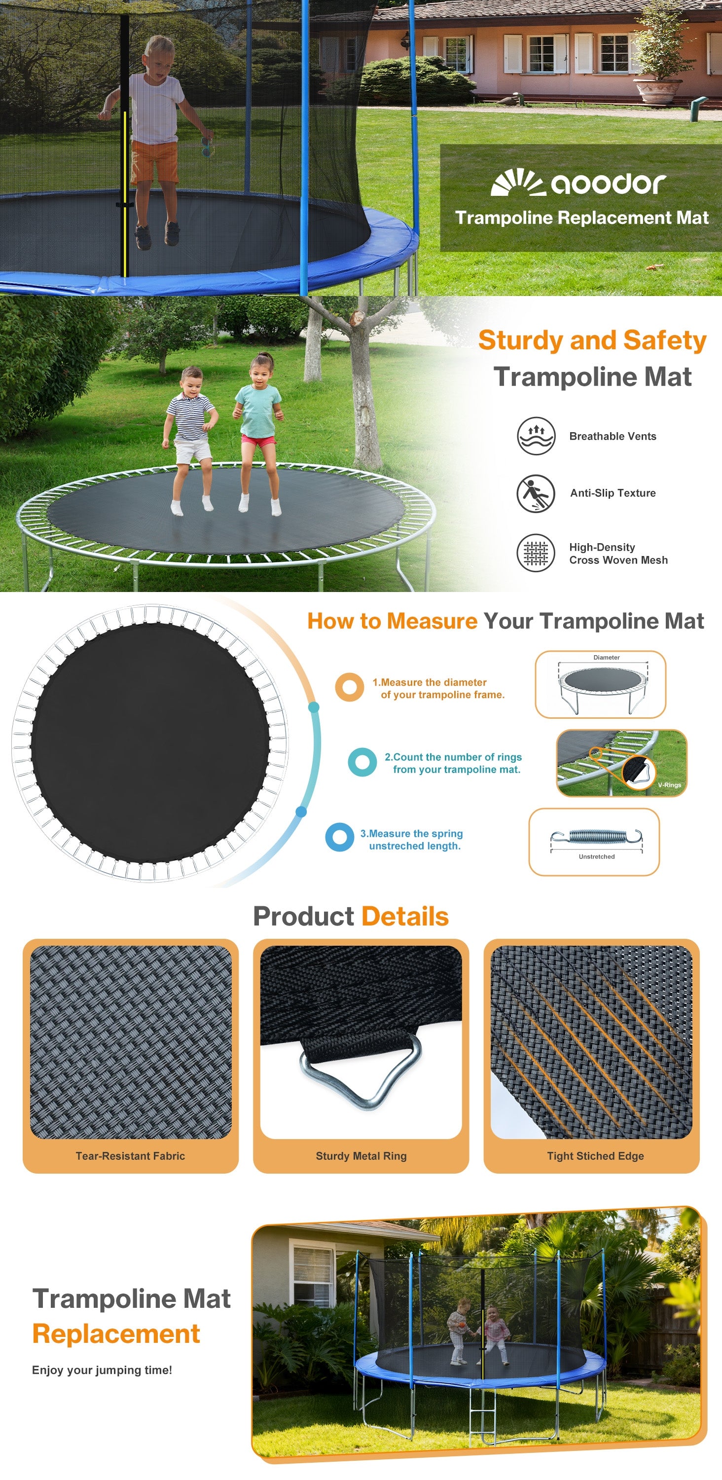 - Premium Material: Made from 260g/m² PP (Polypropylene) mesh material with 8 tightly stitched edges, the trampoline mat provides kids with a superior bouncing experience