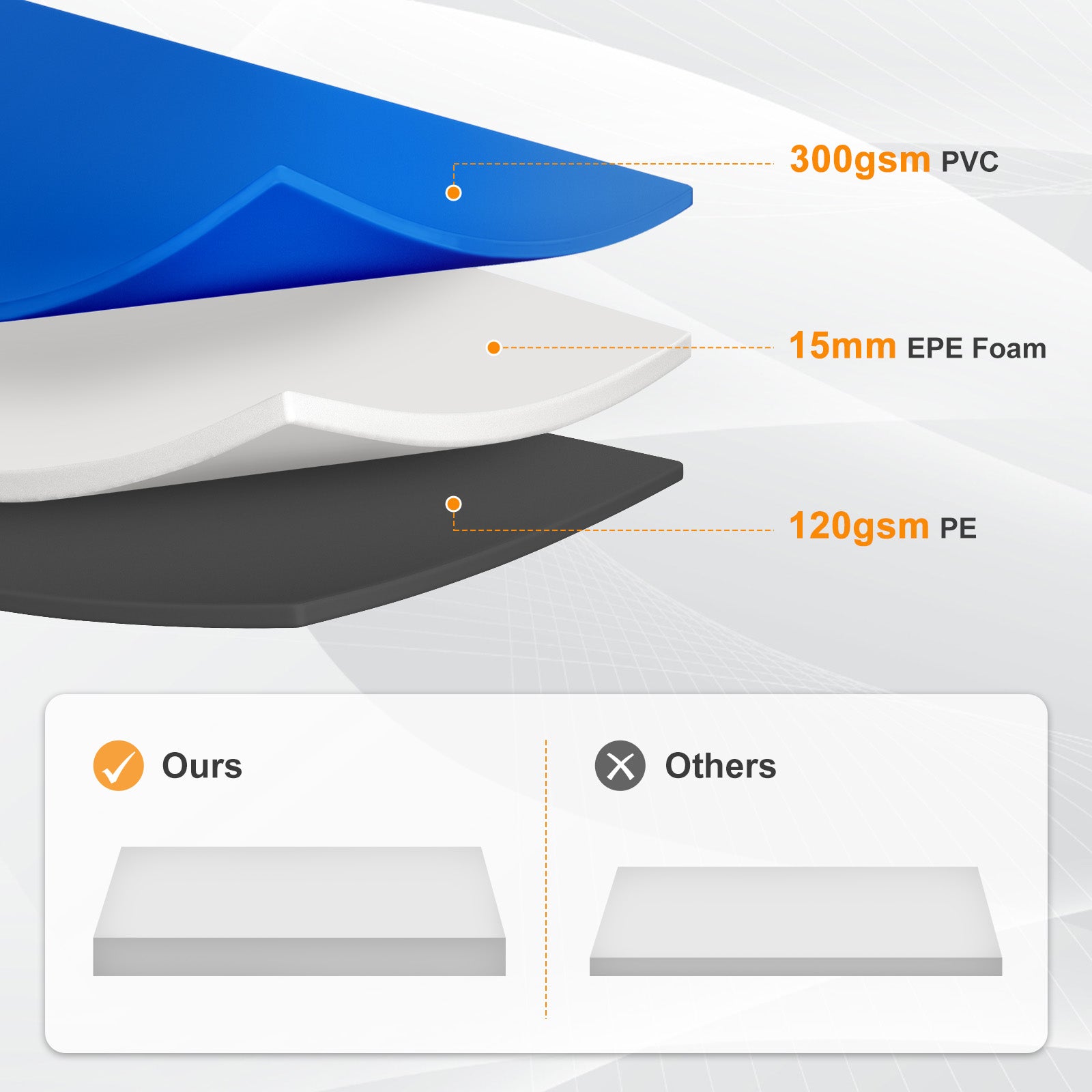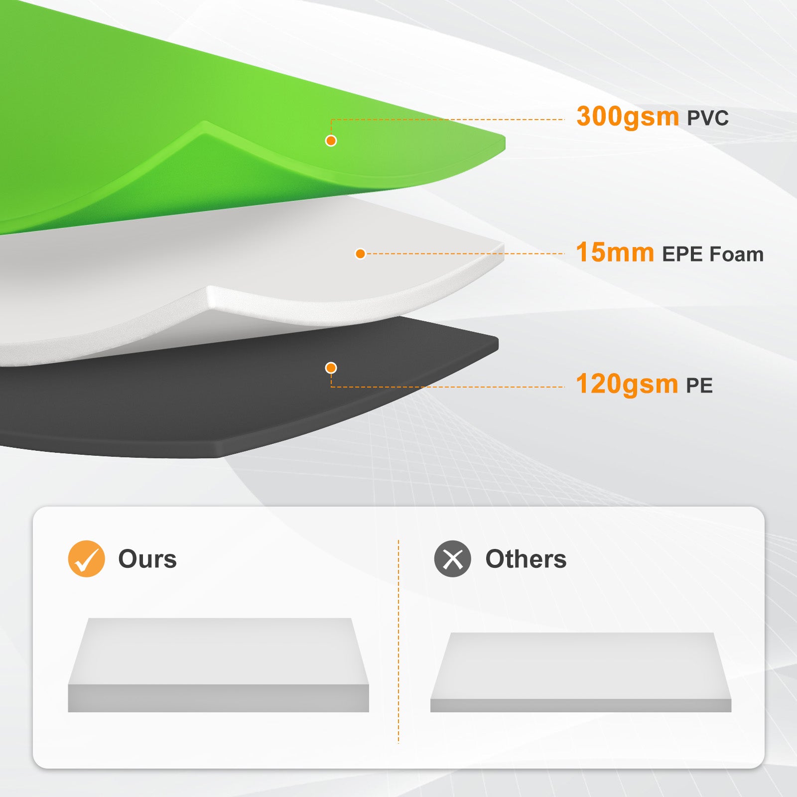 - Durable Material: Crafted with 300GSM PVC on top and 120GSM PE underneath, the pad replacement is waterproof, dirt-resistant, and easy to wipe clean