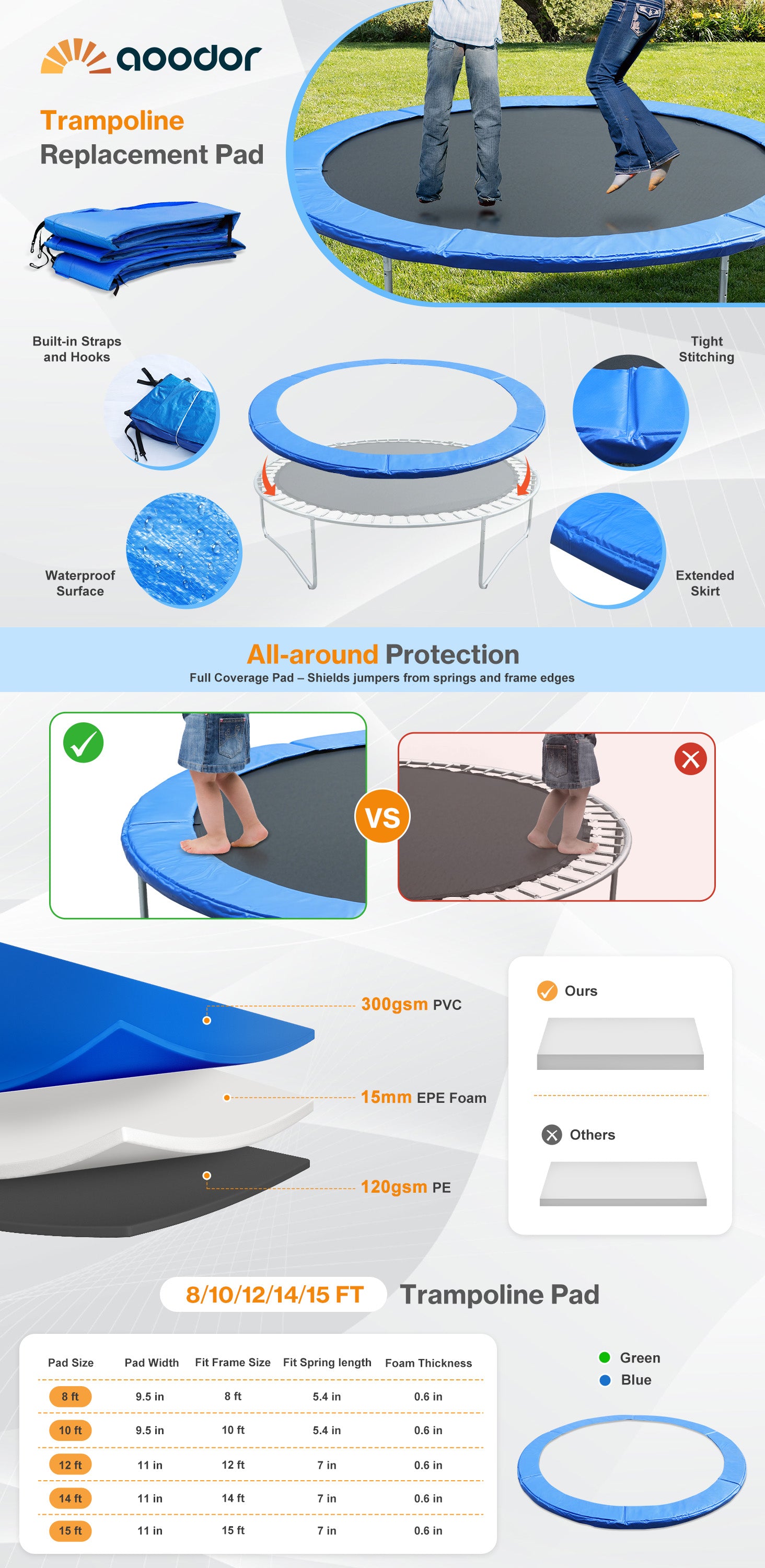 - Size Reminder: Please measure your trampoline frame diameter and spring length before purchasing to ensure a proper fit